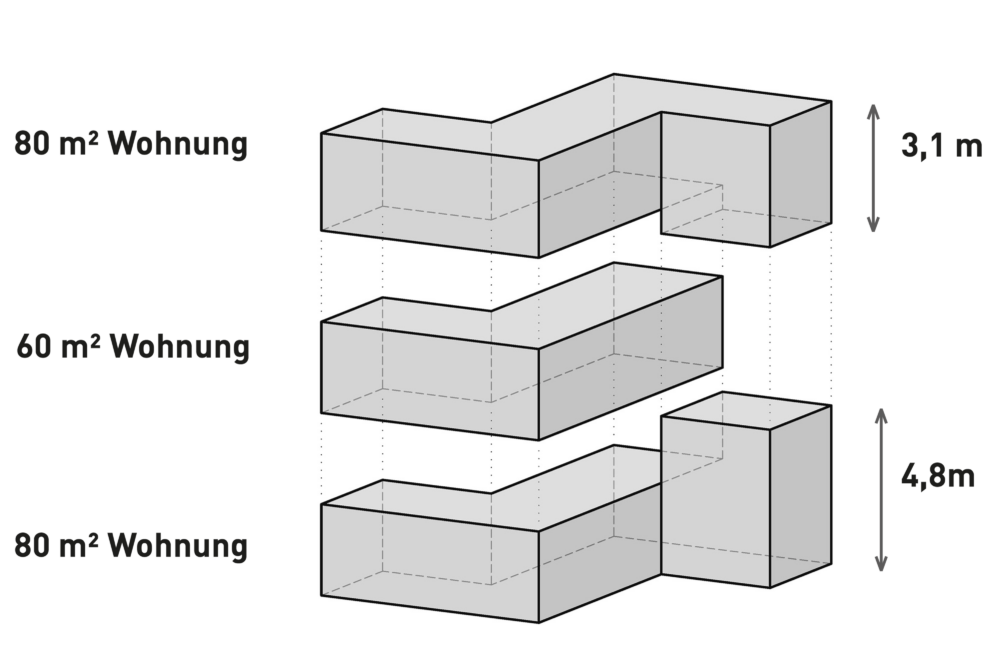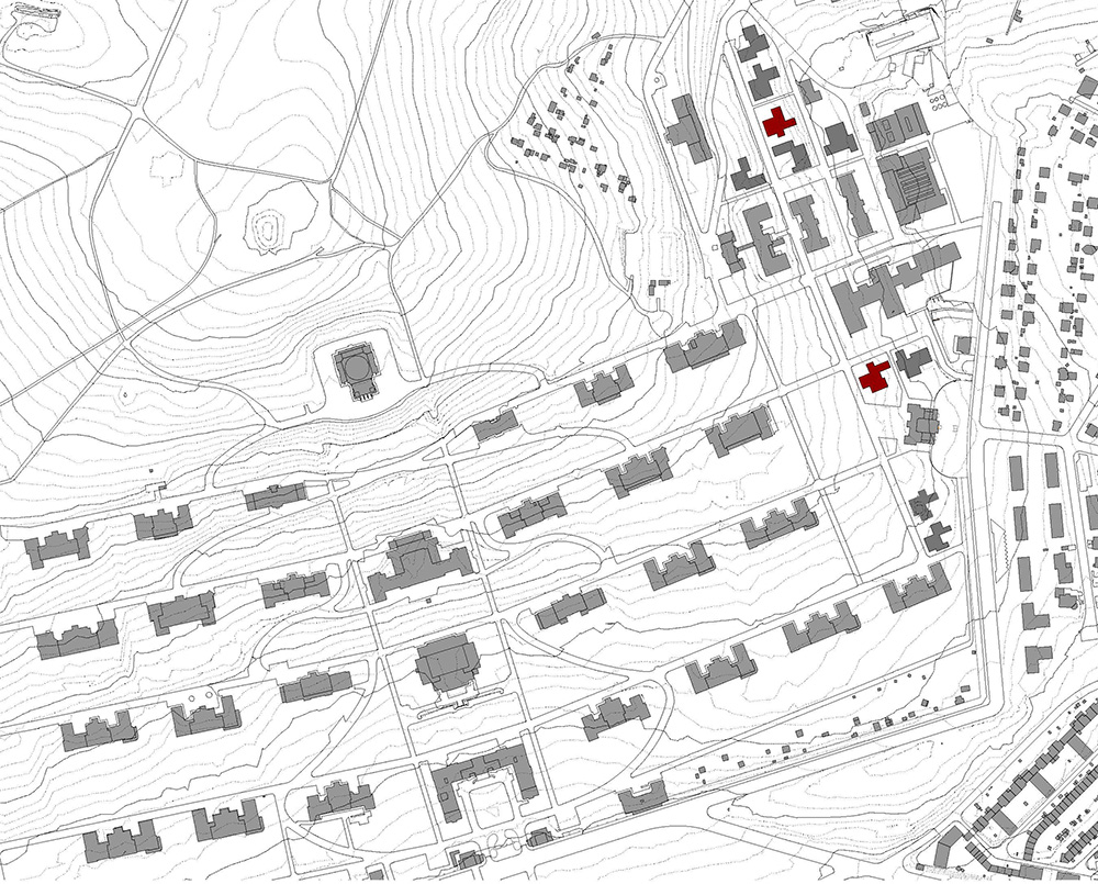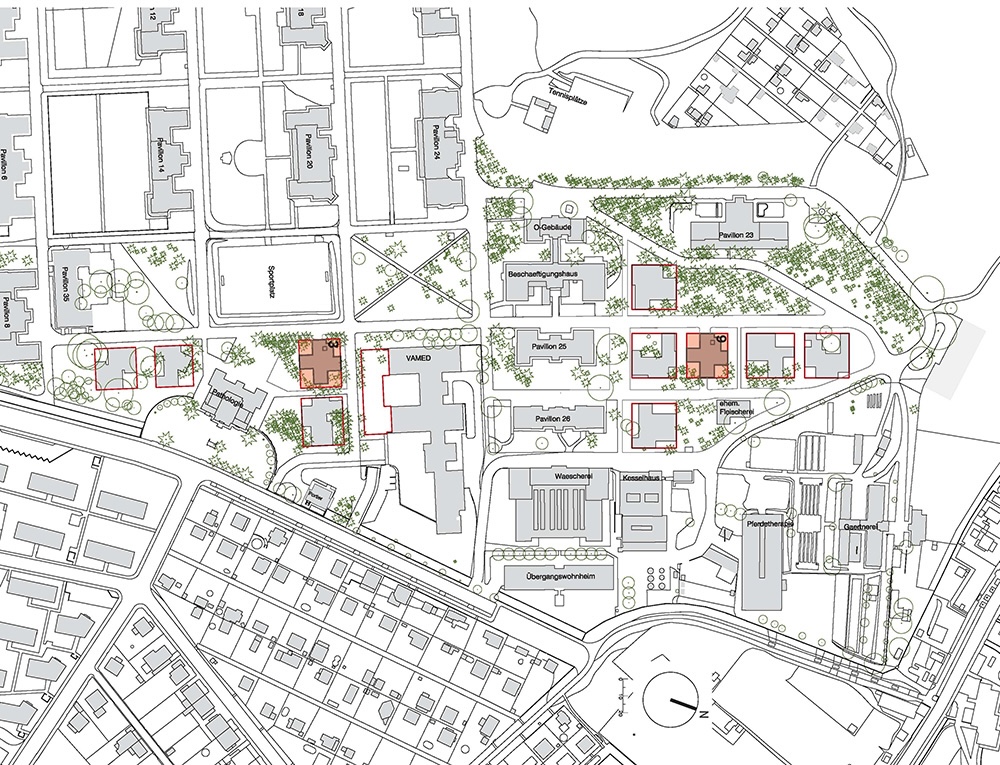Die vorgeschlagene Bebauung ist minimal und punktuell und zielt auf bestmögliche Verträglichkeit mit dem bestehenden denkmalgeschützten Ensemble ab. Bei maximal 16 m Gebäudehöhe (Erdgeschoss + 3 Obergeschosse) gliedern sich die vorgeschlagenen Bebauungen in die Silhouette des historischen Bestandes ein. Ausgeführt in Ziegelbauweise erhalten sie einen im Verband von Neubauten und Bestand kohärenten Charakter.